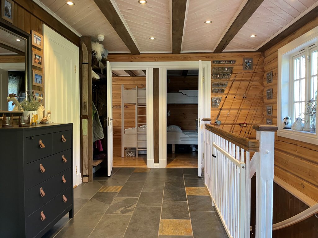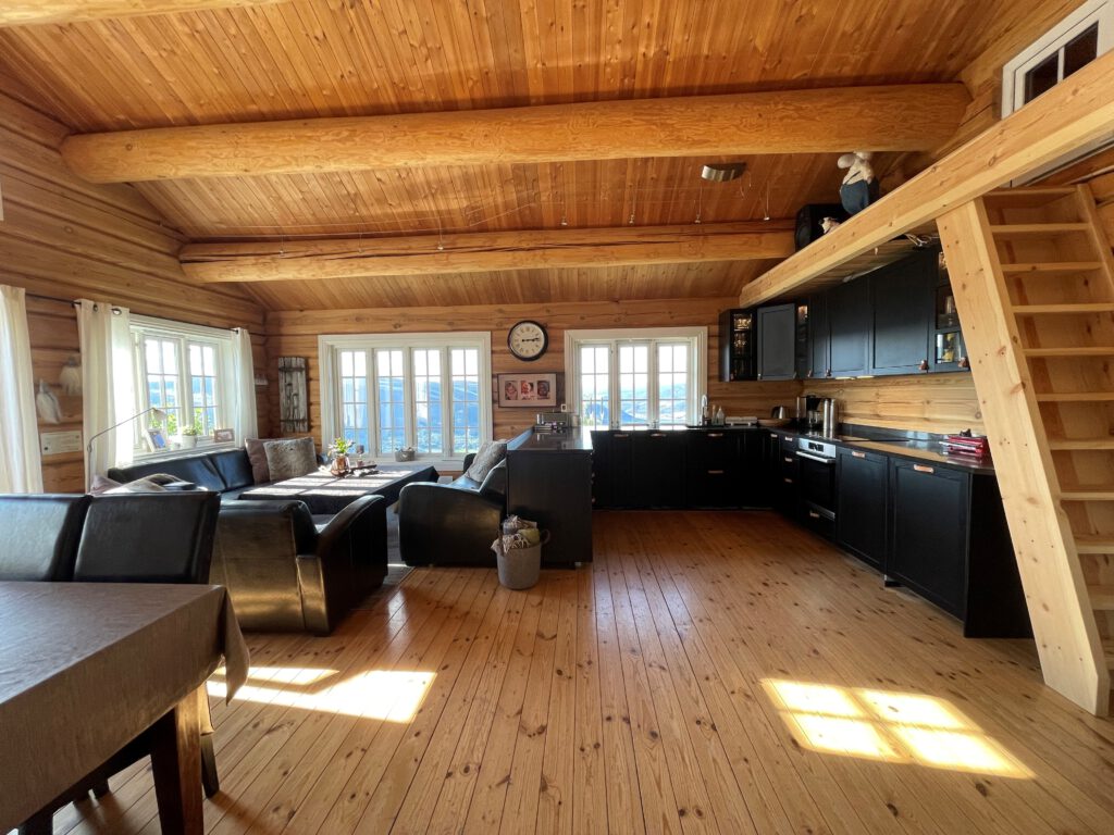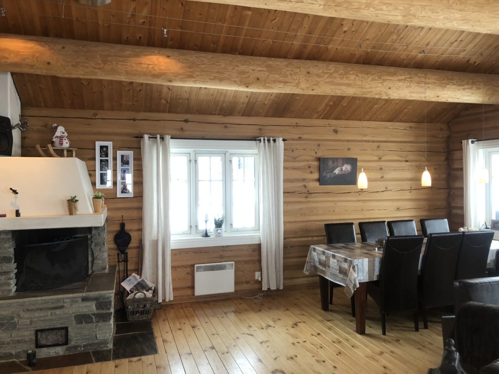90m2 + sovehems på 43m2. Hele 1.etg. Kjøkken/spisestue/stue i åpen løsning. Stor gang med varmekabler. Bad med wc / vask / dusj / varmekabler. 3 store soverom / 10 sengeplasser. Sovehems / 4 sengeplasser. Internett / TV / DAB radio. Peis i stuen. Eget vaskerom i kjeller med vaskemaskin/ tørketrommel og varmekabler i gulvet. Utgang til stor terrasse med bålpanne. Parkering på oversiden av hytta ved inngangen.