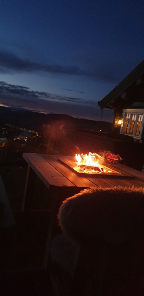 Grille pølser ved dette fantastiske bålbordet og med den fantastiske utsikten er vel beste avslutningen på en solfylt høstdag. ?Føre man går inn og nyter resten av lørdagskvelden foran tvn.