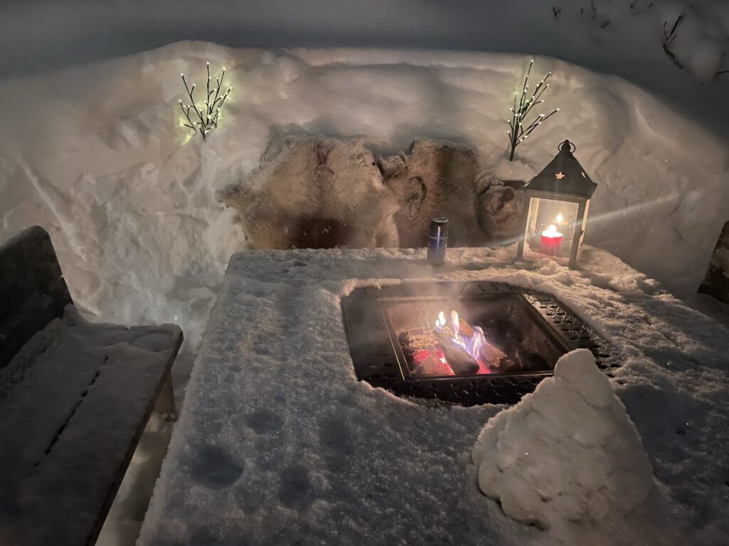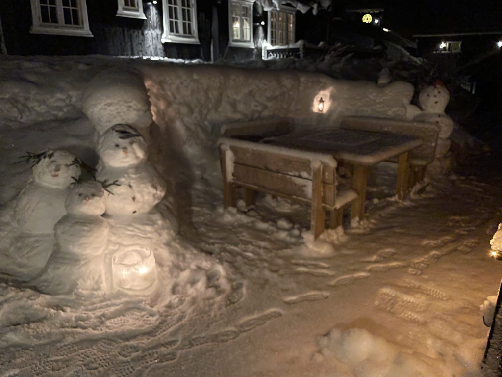 Uteplassen ble veldig fin med noen snøfamilier til å passe på